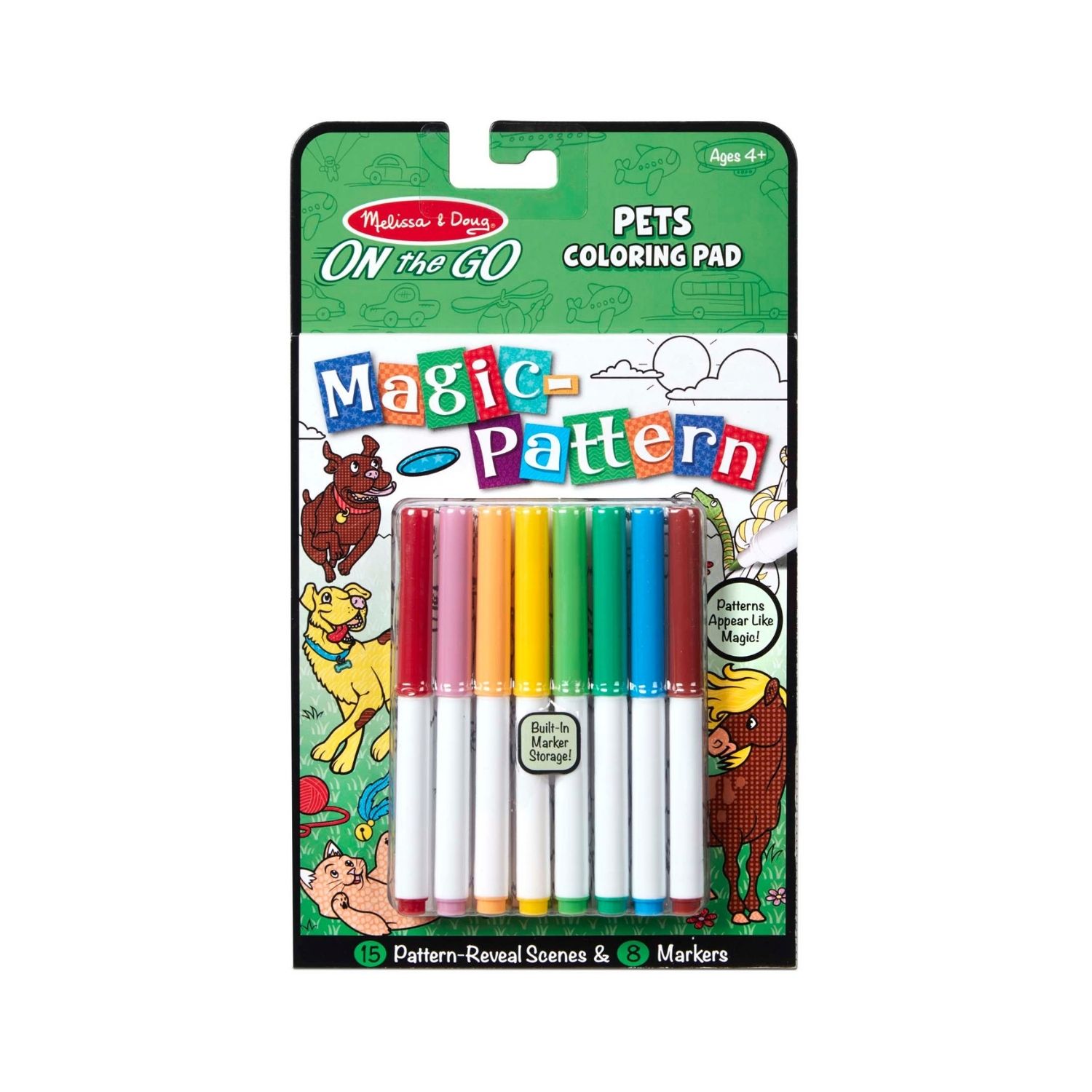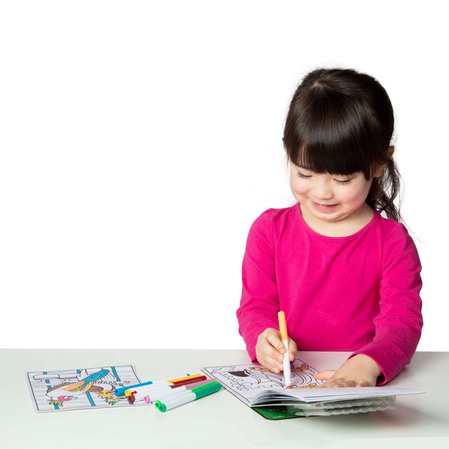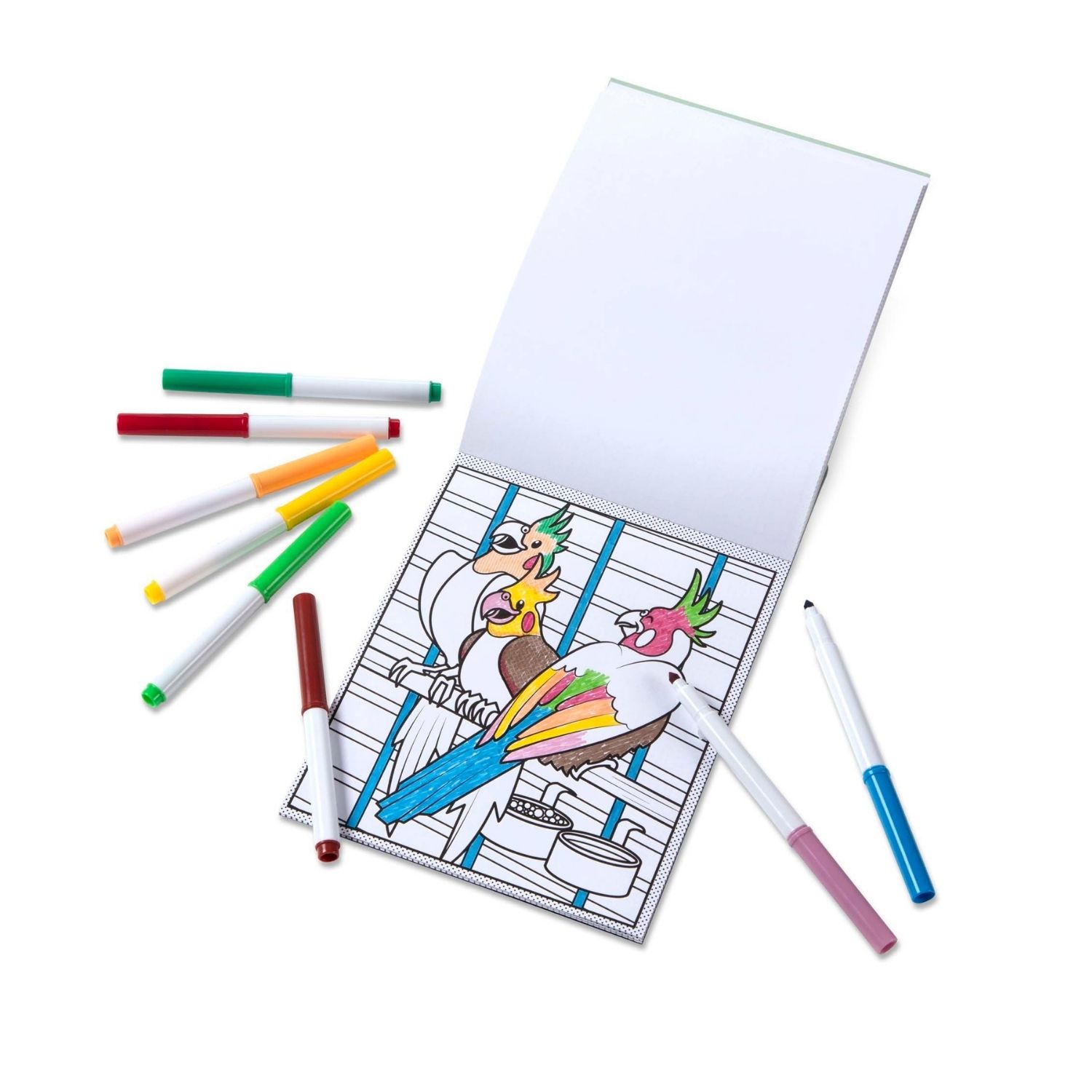- 15 pet-themed coloring pages and eight colorful markers in a handy take-along on-the-go format